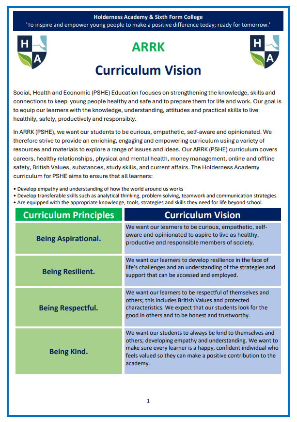 Please see the attached document for the ARRK Curriculum Outline.