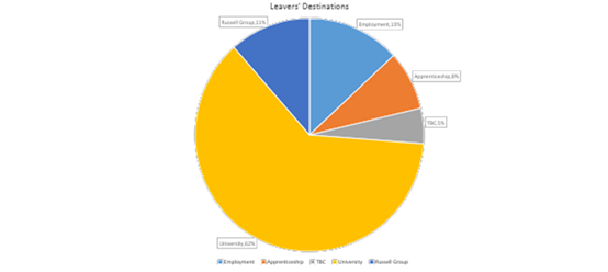 Despite the pandemic, 100% of our students in the 2020/21 cohort progressed onto further study at their first-choice university. This included a number of students who successfully secured places to study Medicine and Veterinarian Science, alongside others who took up course offers from Russell Group Universities including: Durham University, University of York and University of Leeds. The 2020/21 cohort also saw a number of students progress onto apprenticeships in areas such as engineering, business management and accountancy.